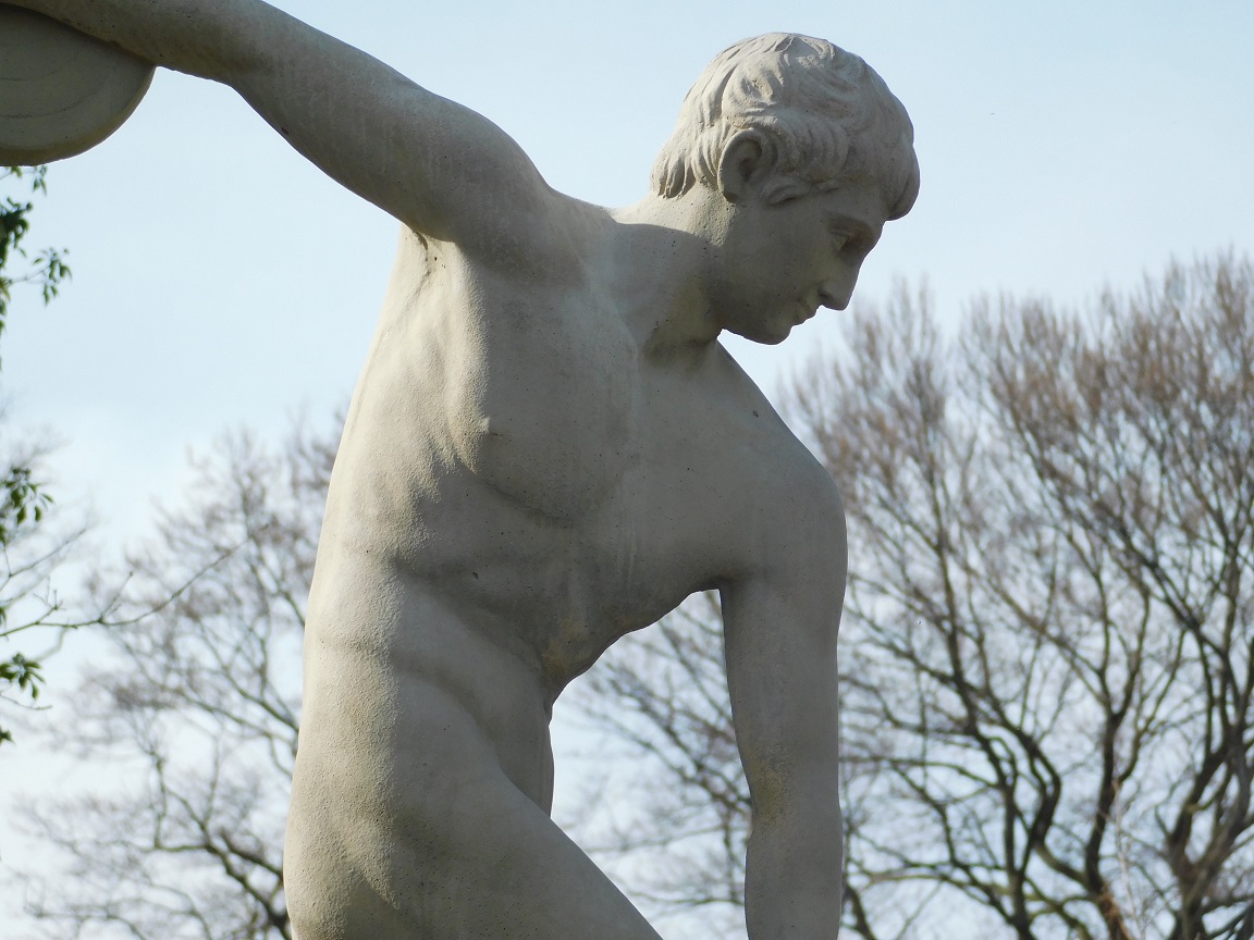Scope of delivery: 1x vintage discus thrower statue + pedestal, cast stone
