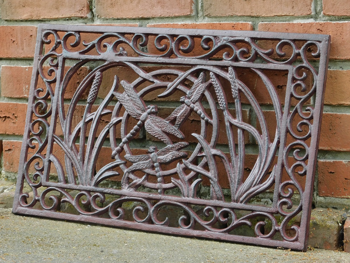 Mooi wandornament / deurmat met libellen, volledig van gietijzer!